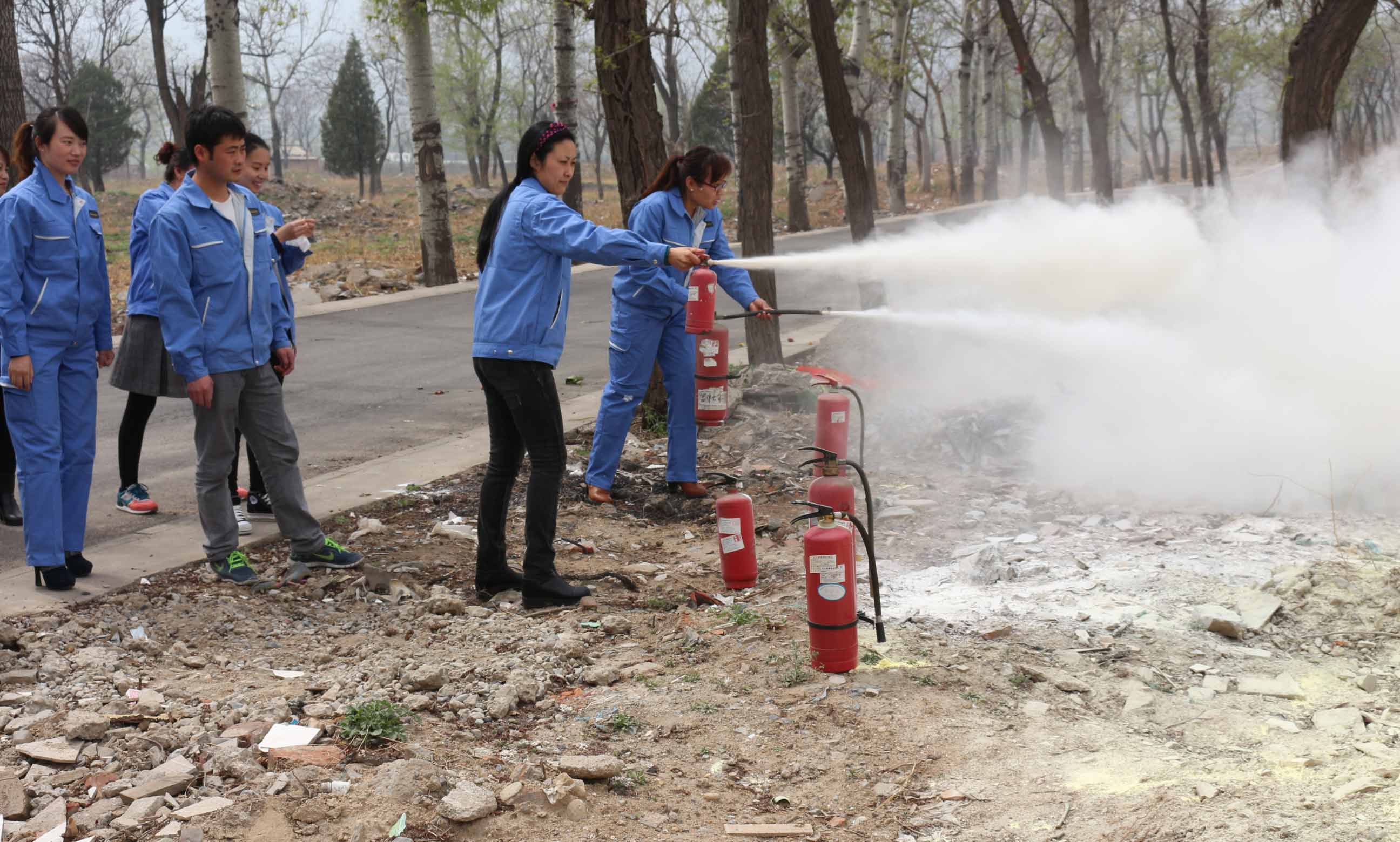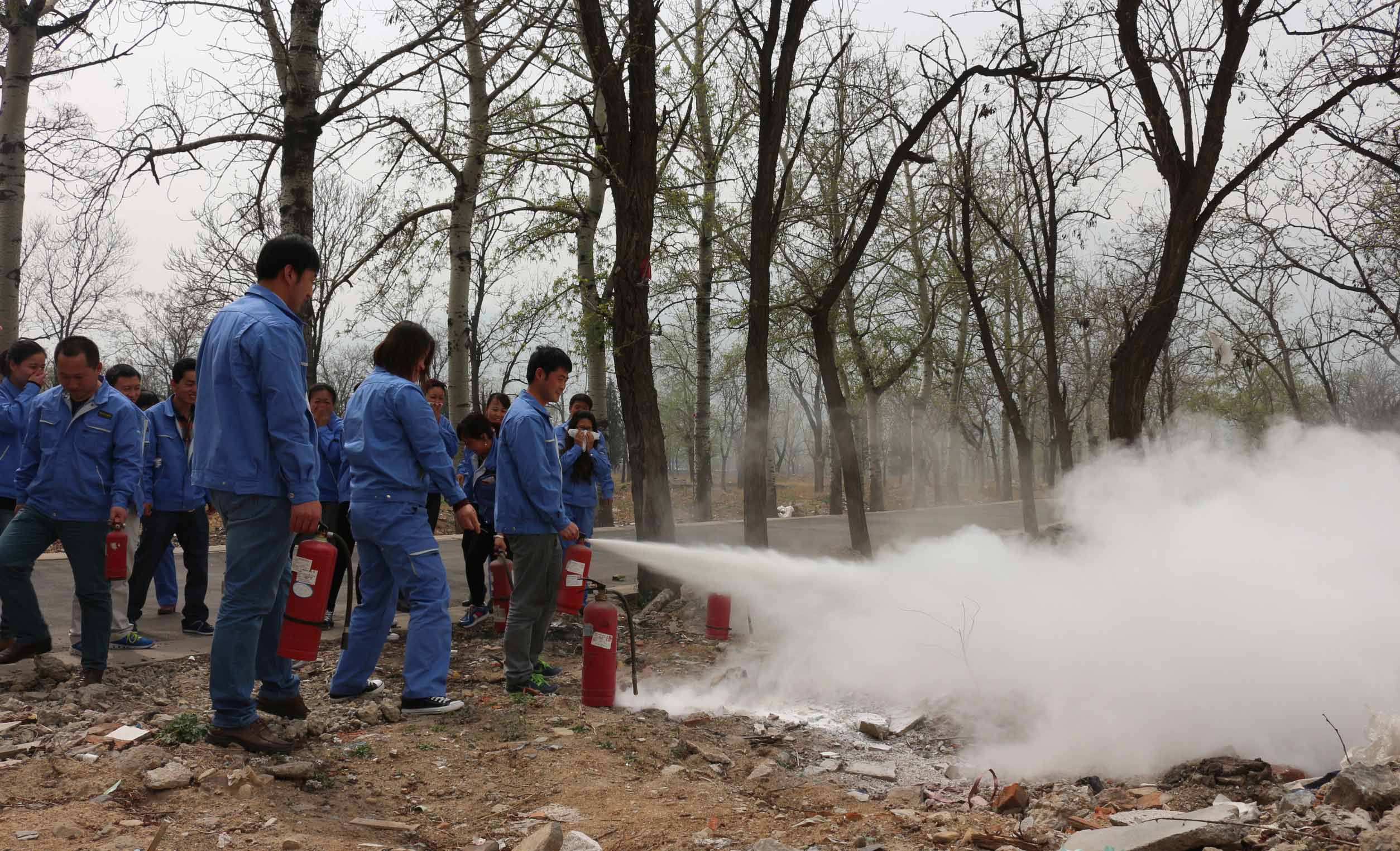 麦工装员工亲身体验灭火的全过程
